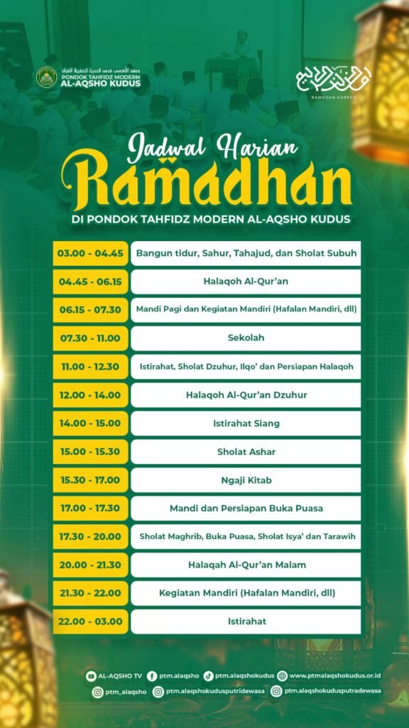 Semoga Allah SWT memberikan kita kesehatan, kekuatan, dan keistiqomahan dalam menjalankan ibadah puasa, qiyamul lail, tilawah Al-Qur’an, serta seluruh amal kebaikan di bulan suci ini.